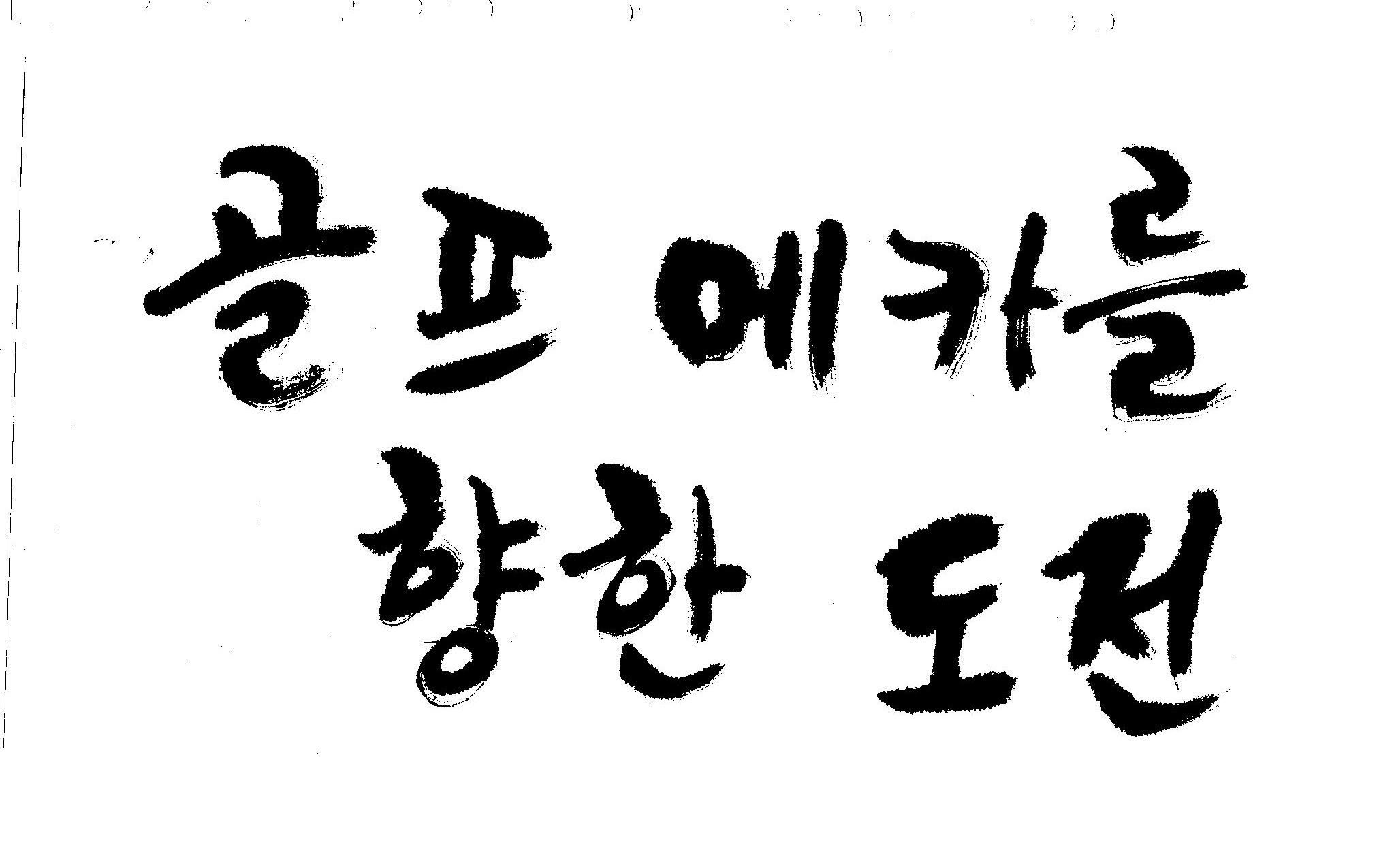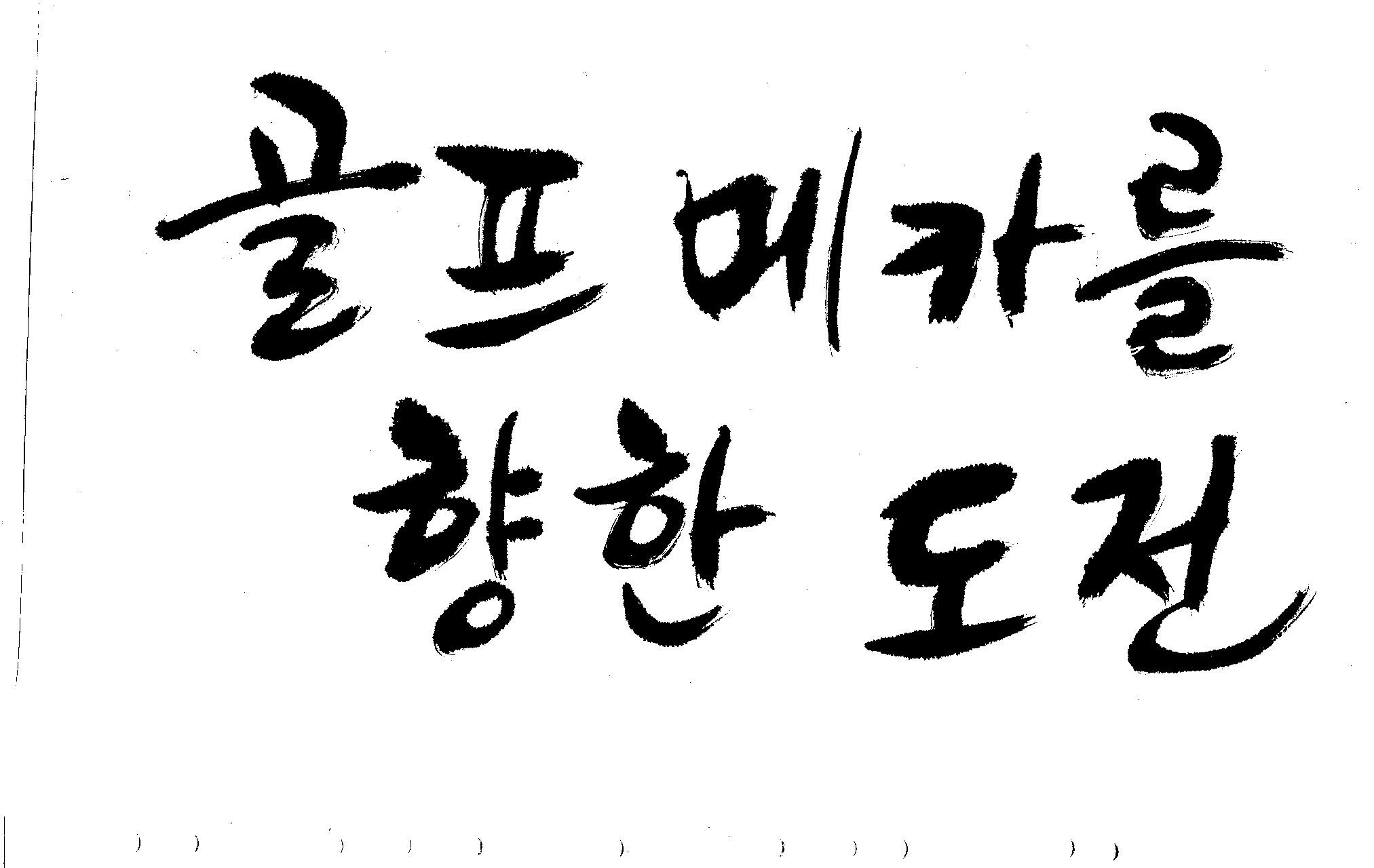 우경의 행복한 캘리세상-골프메카 김철호 일반 0 8729 2009.07.18 10:25 리듬감을 최대한 살리고 ㅡ 스포츠의 운동감과 밝음 기교섞인 획을 배제--일반적인 느낌 굵기변화를 통하여 도전 낱말을 강조 스타일은 비슷하지만 ...한 사람이 썼으니까 ㅎㅎㅎ 서로 다른 글꼴을 올린 것은... 비교하여 보시고... 편집자에게 선택권을 주는 것입니다